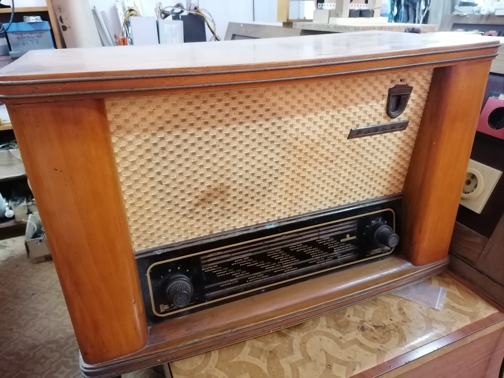 Радиото е сравнително добре запазено. При включване скалата свети, има шум от високоговорителя. До последно е работило. Предлагам цена 50 лв.